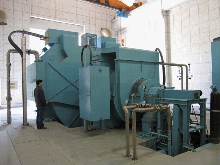100MW脉冲发电机组作为聚变与等离子体实验基地的重要设备,是J-TEXT托卡马克装置的主供电源,它是一个卧式三轴承座支撑的飞轮储能脉冲发电系统,由美国西屋公司生产,设计储能185MJ,具备每两分钟输出4s峰值功率为100MW脉冲的能力。